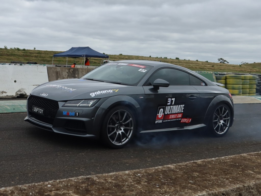 The first two challenges of the day were the “Auto Test” and “Speed Stop”, which is described as “a short sprint through the drag-strip burnout box into a tight 180, where a series of bollards must be navigated as quickly as possible before screeching to a halt in the brake box”. I didn’t even bother seeing the cars tackle the Speed Stop as it was right down the other end of the track, and most people had gathered at the start of the Auto Test right next to the Thunderdome, which had it’s own drift event for some reason. The Auto Test is just a fancy name for auto cross or gymkhana, where cars negotiate some tight corners, heavy braking zones and cones in the fastest time possible. Happily, I got a decent view of the action as the cars launched and worked their way around the bottom end of the circuit. Not everyone knew which way to go, as demonstrated by one competitor in a Torana, but the most exciting moment was Adrian Portelli almost losing his McLaren P1 whilst accelerating out of the hairpin. You also had a big purple Dodge Challenger Hellcat that was by far the loudest car there, and probably not the most obvious choice for a tight, technical course. Being centimeters away behind the concrete barriers was fun though.