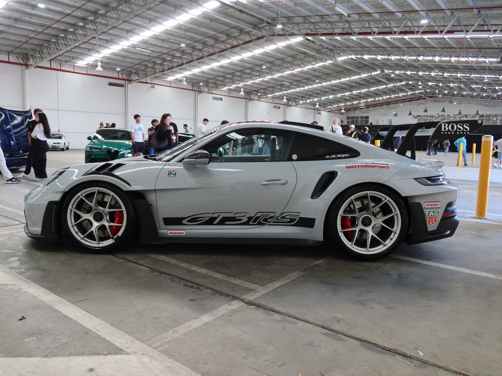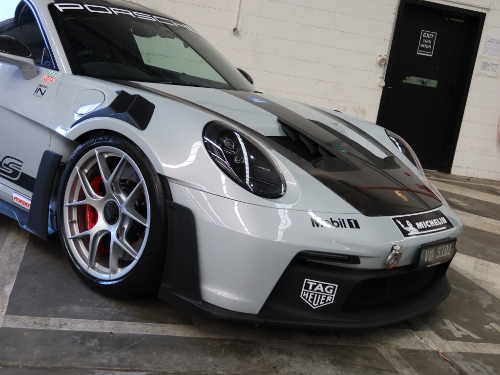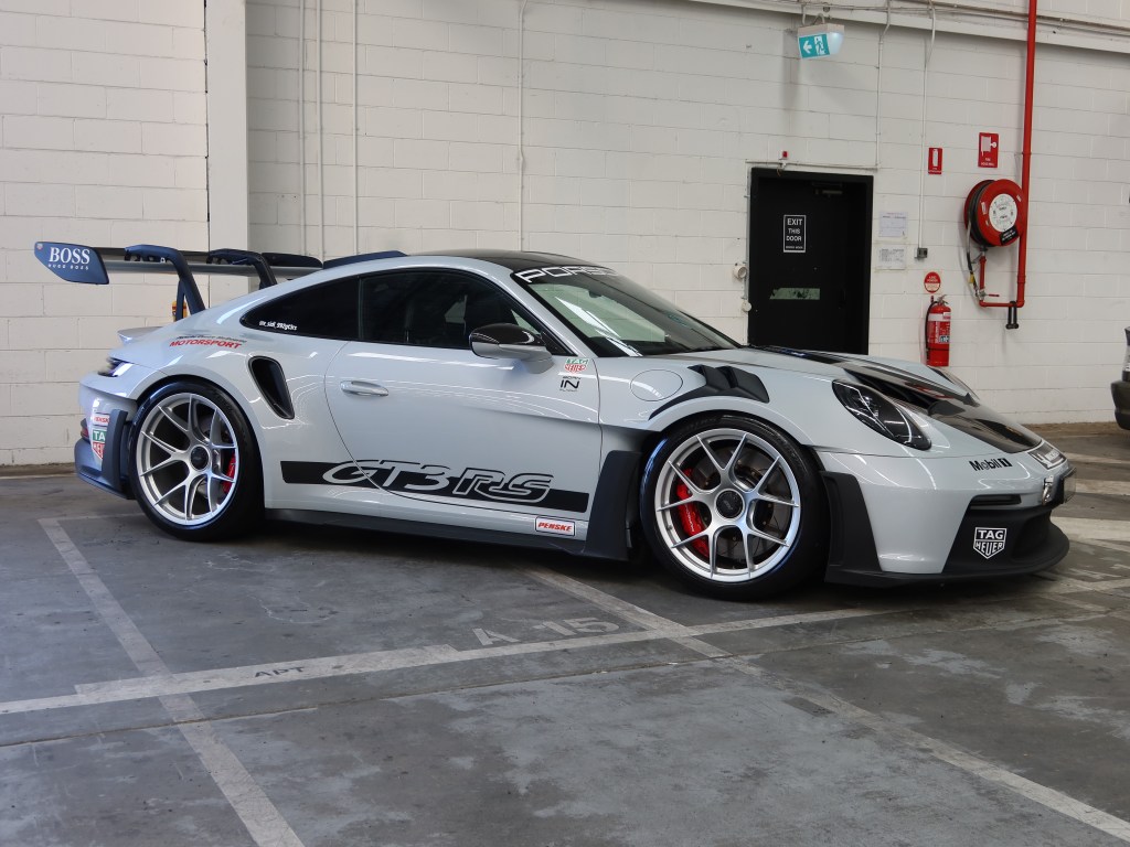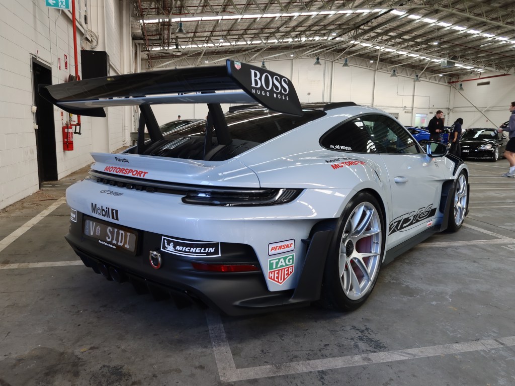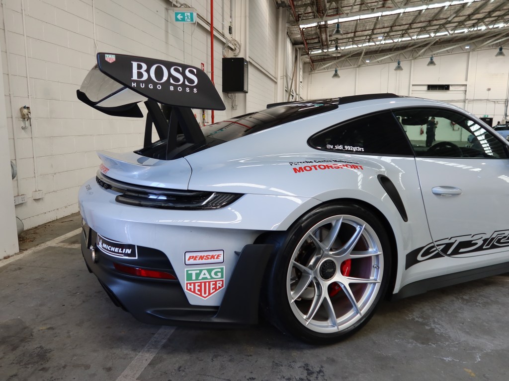 Out of all the 992 generation 911 GT3 RS examples in Melbourne, this one gets around a lot and sees plenty of track time. It makes complete sense when you take a look at the rear wing and the aggressive diffuser. There’s no bloody way any of that will work properly on the street. The sponsor decals that Sid has added to his chalk and carbon coloured machine really finishes off the race car aesthetic.
